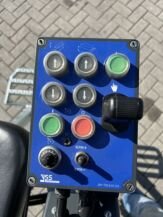 - Linker bedienersstoel voorzien van stuurwiel en rijhendel.