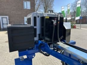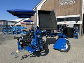 - Grote kunststof voorraadbak met RVS zijkanten hydraulisch kippend naar de zijkant.